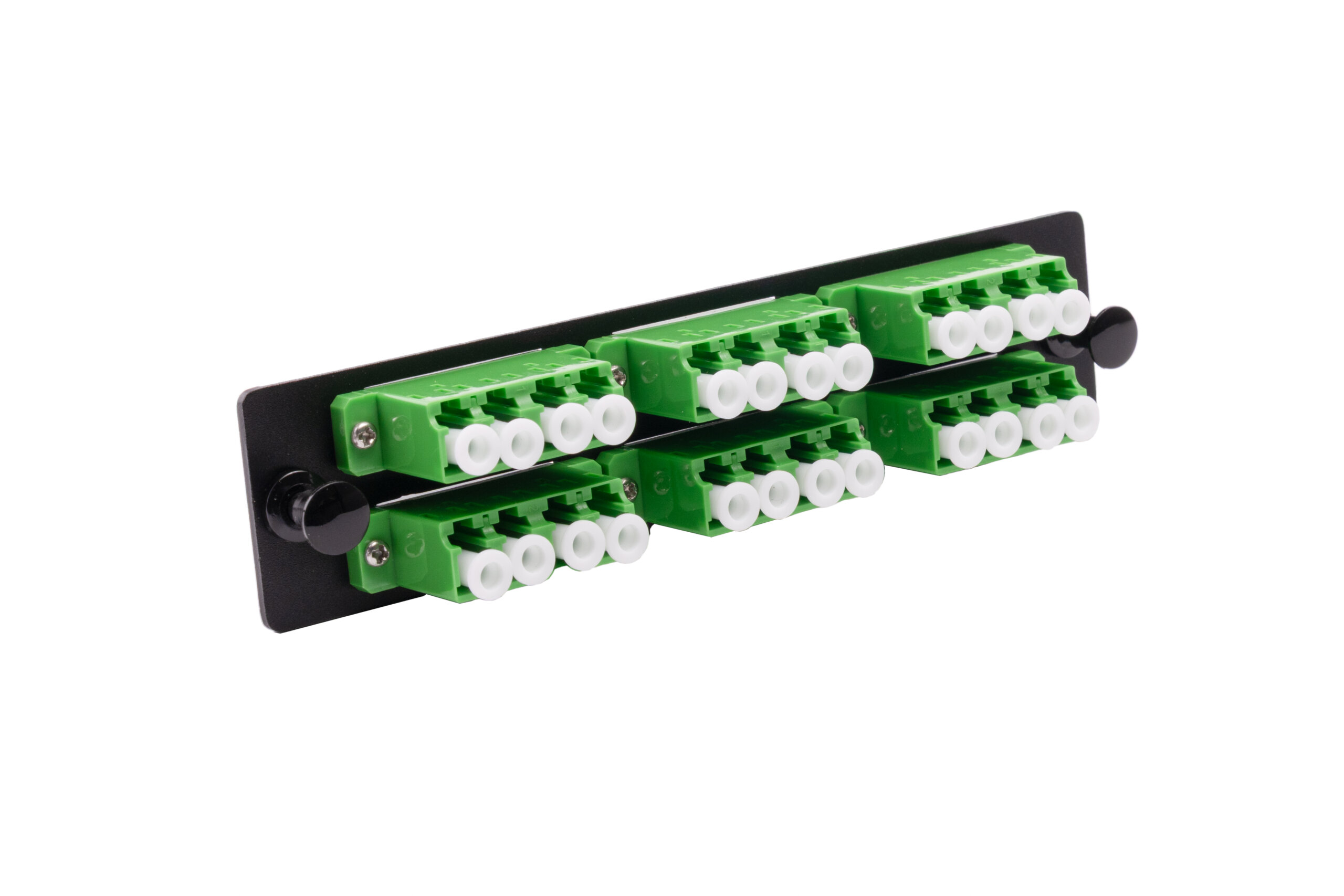 LC/APC 6 Port (3 duplex) SM green, LC 6 Port (3 duplex) SM blue, LC 6 Port (3 duplex) MM beige, LC 6 Port (3 duplex) MM aqua, LC 6 Port unloaded (3 duplex), LC/APC 12 Port (6 duplex) SM green, LC 12 Port (6 duplex) SM blue, LC 12 Port (6 duplex) MM beige, LC 12 Port (6 duplex) MM aqua, LC 12 Port unloaded (6 duplex)
