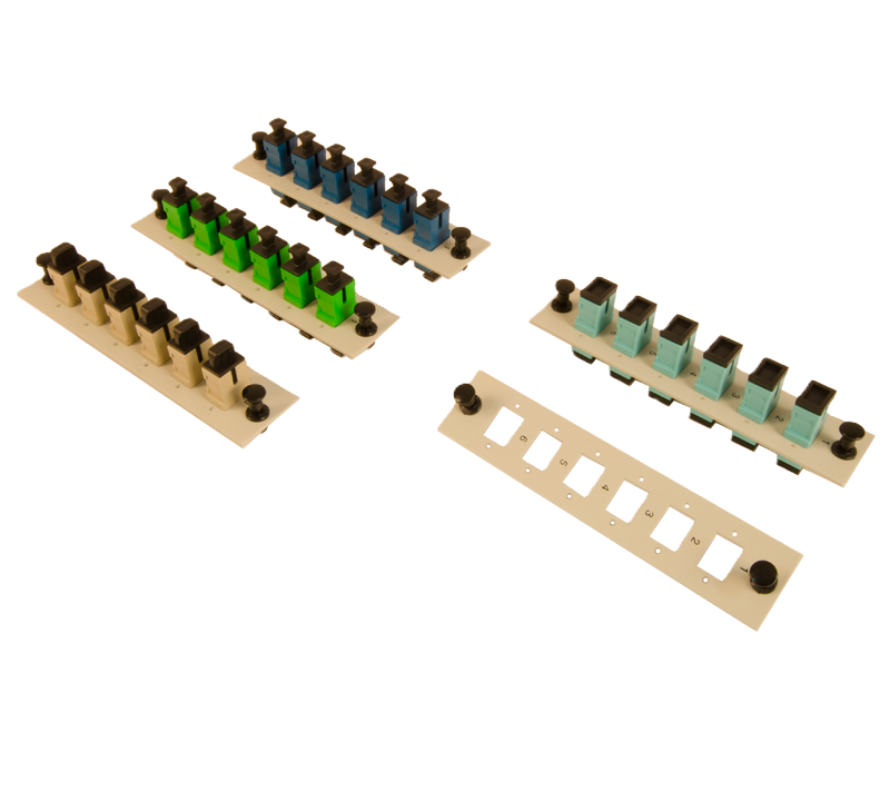 SC/APC 6 Port simplex SM green, SC 6 Port simplex SM blue, SC 6 Port simplex MM beige, SC 6 Port simplex MM aqua, SC/APC 8 Port SM green, SC 8 Port simplex SM blue, SC 8 Port simplex MM beige, SC 8 Port simplex MM aqua, SC/APC 12 Port (6 duplex) SM green, SC 12 Port (6 duplex) SM blue, SC 12 Port (6 duplex) MM beige, SC 12 Port (6 duplex) MM aqua