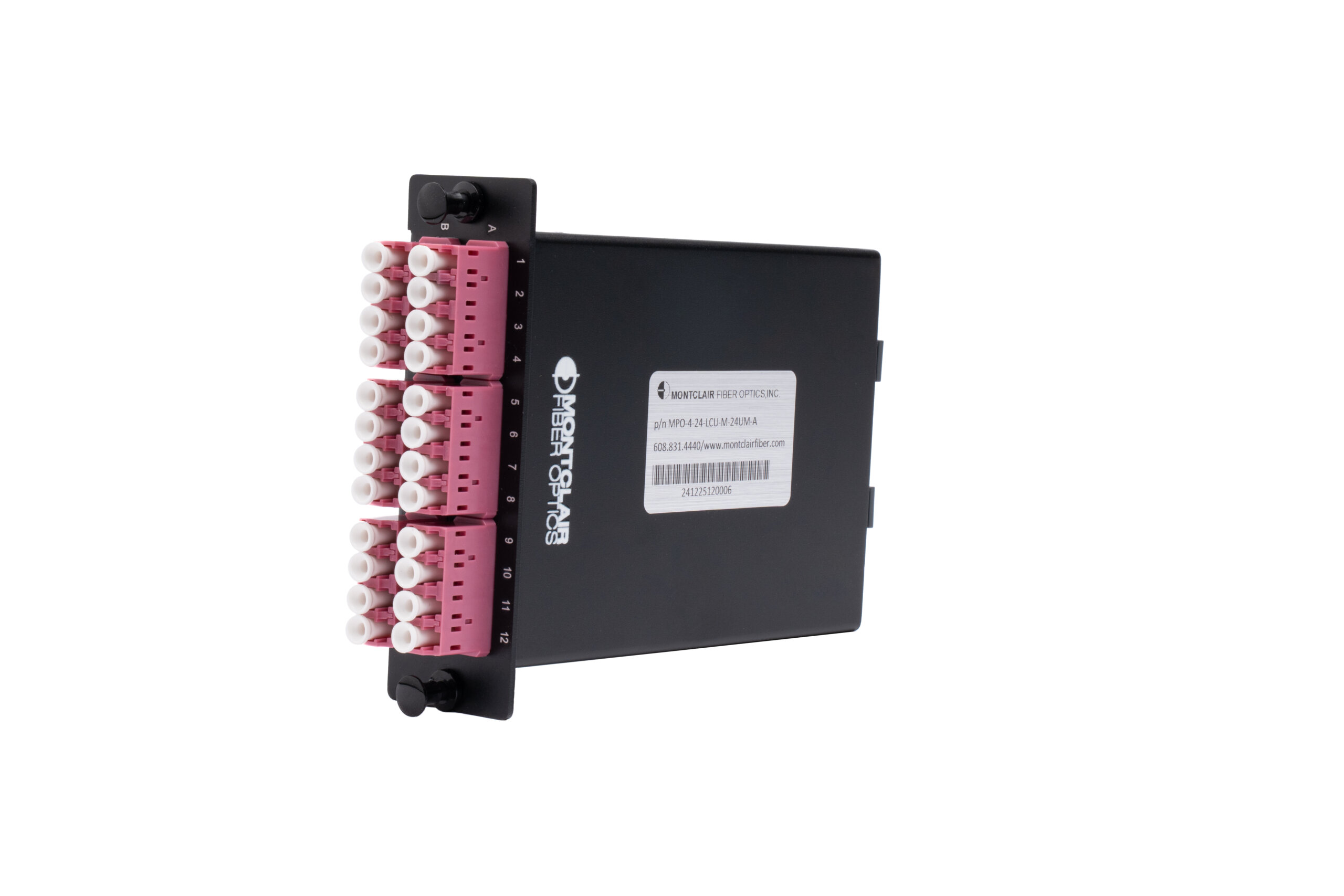 Montclair delivers a complete MTP®/MPO end-to-end solution encompassing Active optics, LGX modules, fiber cable assemblies, and backbone (trunk and fanout) cables. Available in an LGX® footprint for ultra-high density modular applications.